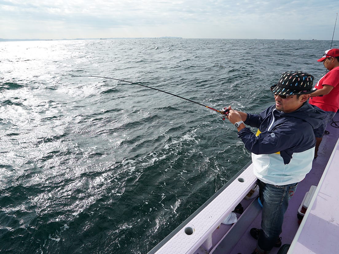 もう1つは釣り方です。カワハギ釣りにもいくつかの釣り方がありますが、その中でも基本となるのは、オモリが底に着いた状態で仕掛け全体を「張らず、緩めず」に保つゼロテンションの状態です。そこから上下に仕掛けを動かす動作も加えて、カワハギにエサをアピールします。具体的には仕掛けが底に着いたら一度ゼロテンションを作ってアタリを待ち、アタリがなければサオを高く上げます。それからゆっくりと、再びオモリが底に着くまでサオを下げていきます。あとはこの動作の繰り返し。5~6回やってアタリが出なければ、一度仕掛けを回収してエサを確認します。
