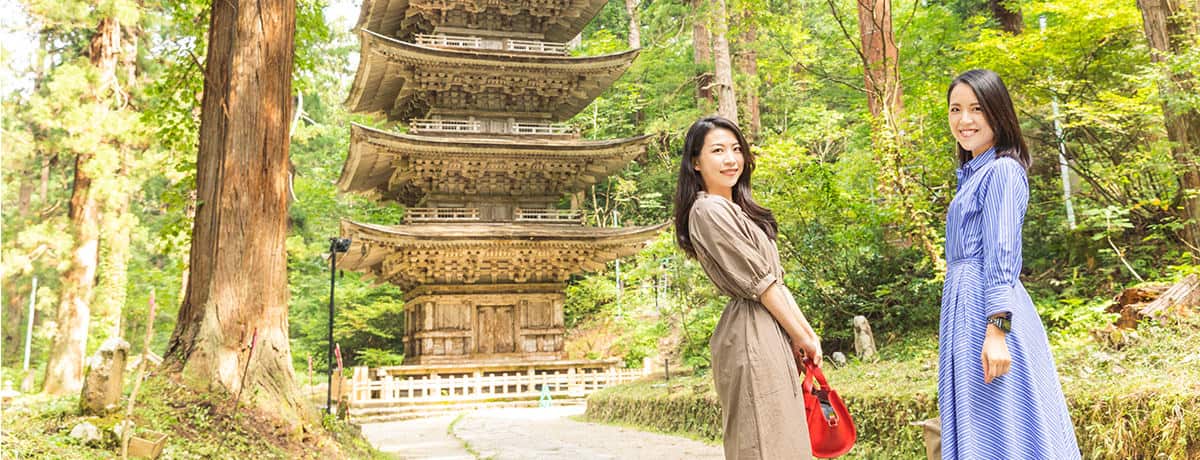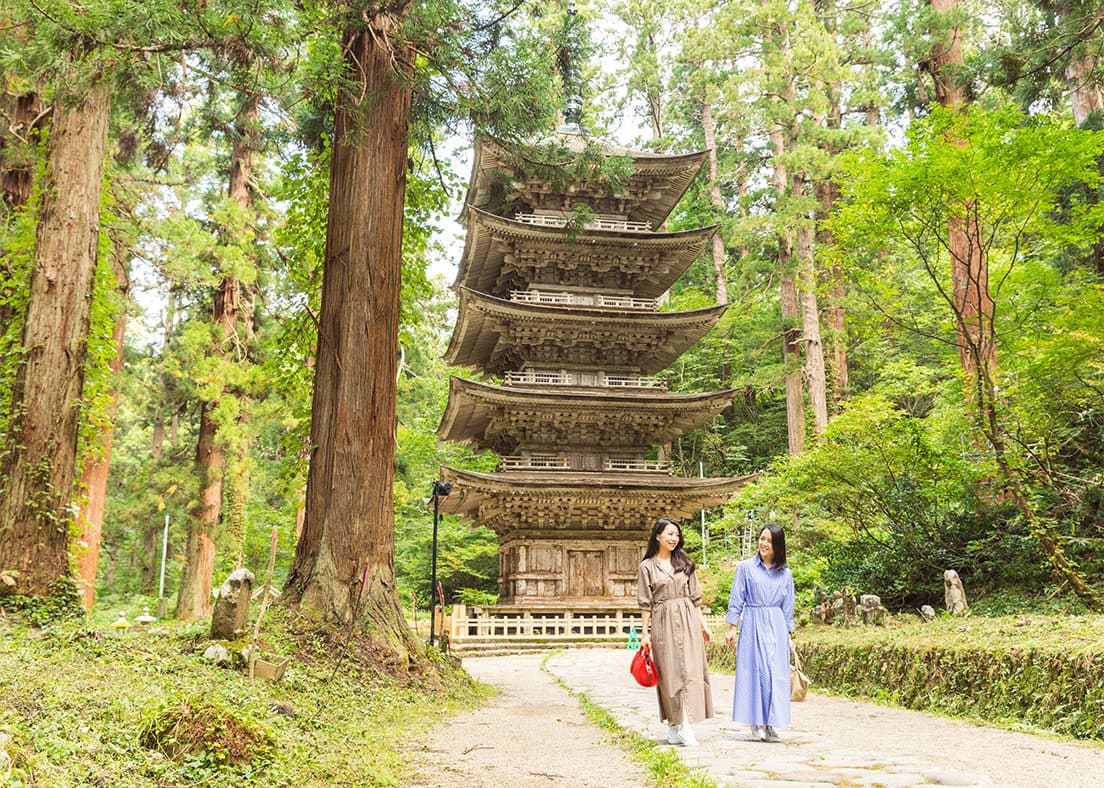 東北地方では最古の木造建築である五重塔は、国宝指定されています。平安期に平将門によって創建され、現在の塔は1372年(応永5年)に再建されたといわれています。屋根は日本古来の「杮葺(こけらぶき)」で、三間五層の「素木(しらき)作り」という手法で建てられているそうです。