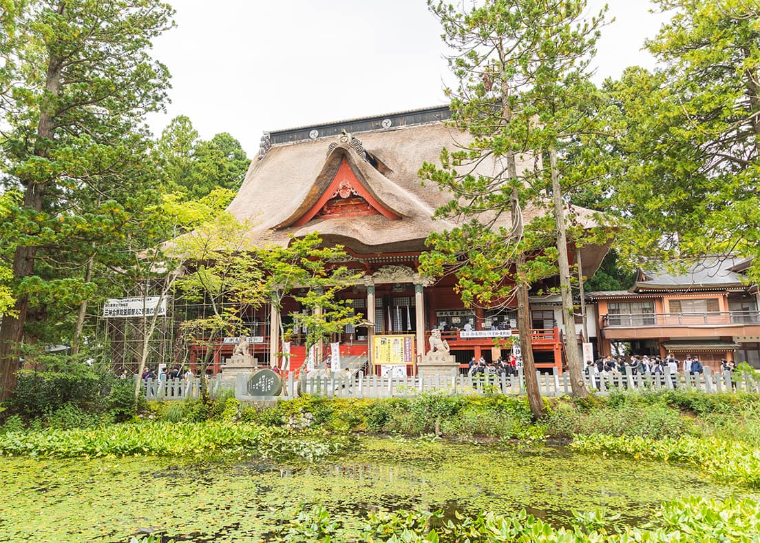 五重塔をたっぷり堪能したあとは、羽黒山の山頂にある社殿へ。こちらの出羽三山神社では、羽黒山、月山、湯殿山の三神が合祀されています。山岳信仰の中心地として、国内外問わず多くの参拝者で賑わいます。