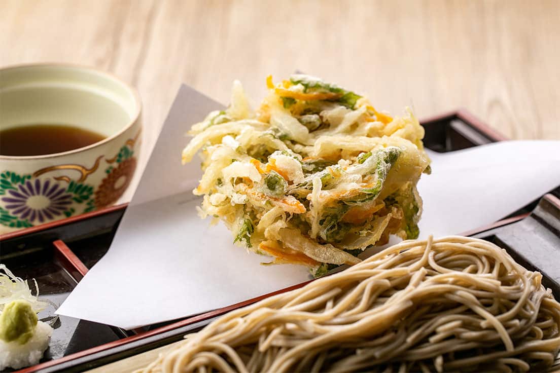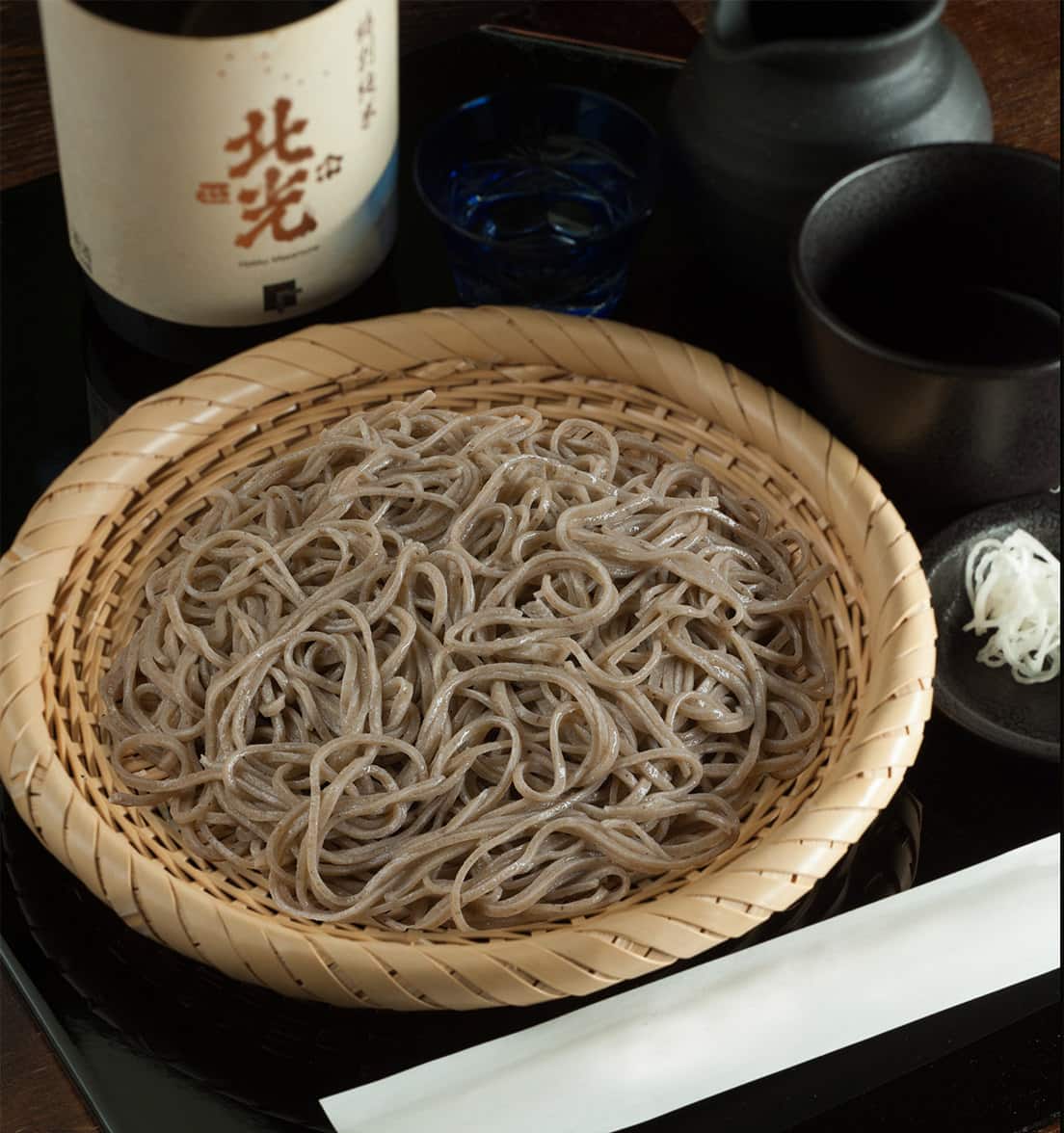 「蕎麦旬菜 こすげ」のそばは名産地・黒姫山麓のものを中心に使用しています。そば粉は、風味を引き出すように細心の注意を払って石臼で製粉されたもの。これを低温で管理して打ったそばは、香り高く、のど越しのいい信州そば本来の味に仕上がります。また、「本枯節」だけを使ったそばつゆのだしは、雑味のない深い旨味が特徴です。