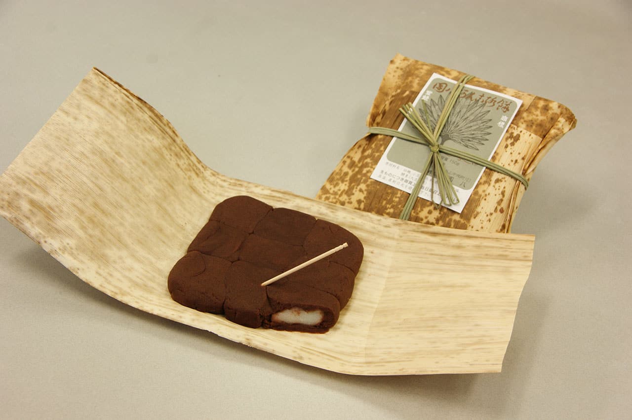 伝統的な竹皮で包まれた「あんころ餅」は、石川県白山市に店を構える「圓八(えんぱち)」の看板菓子。