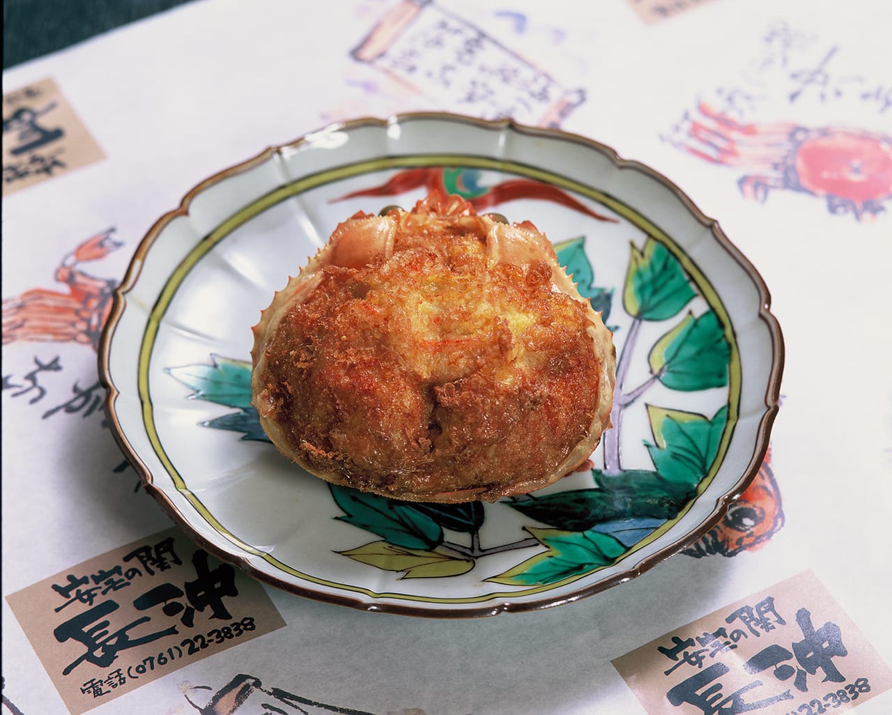 手を変え品を変え市長をもてなしていた料理人たちですが、ついに新しく出せるものがなくなり苦肉の策で考案したのが、香箱ガニと呼ばれるメスのズワイガニの殻に加納ガニ(オスのズワイガニ)とベニズワイガニのカニ身を贅沢に詰めて揚げた「かに甲羅揚」だったのです。