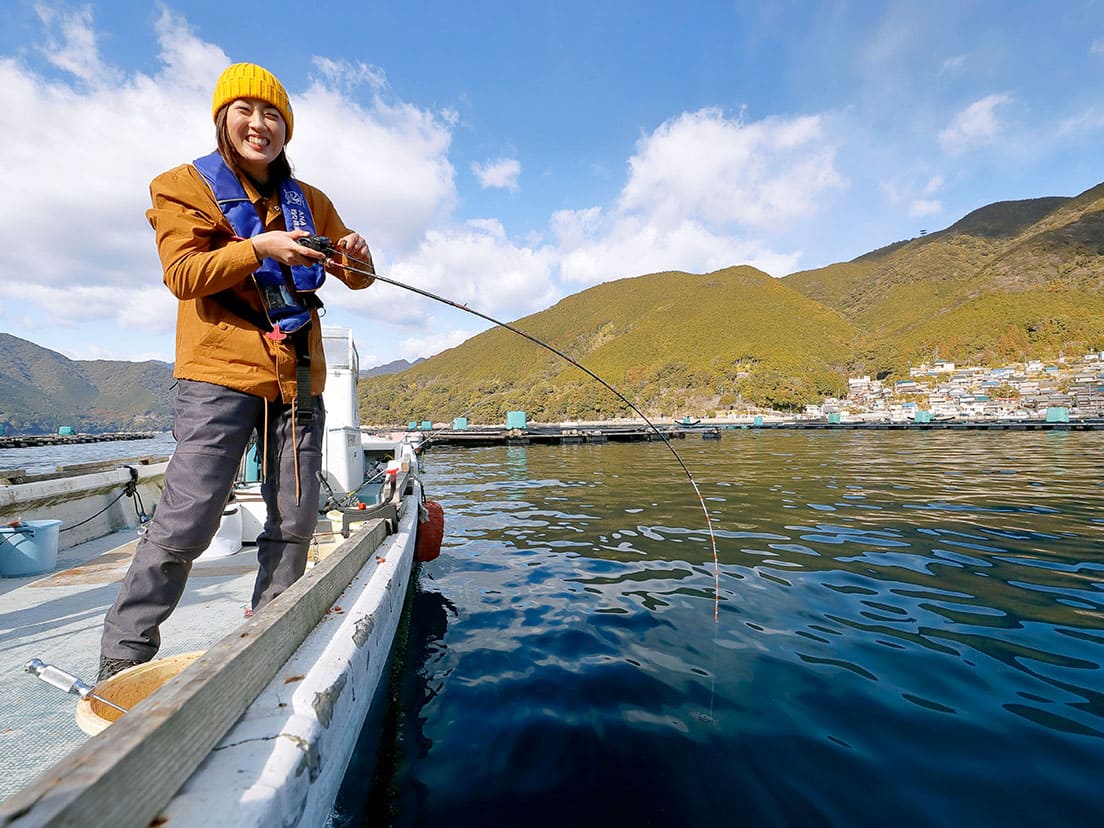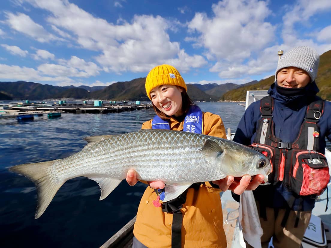 その後、同じ釣り方で元気なボラも追加。きれいな海で育つこの時期のボラは「寒(かん)ボラ」と呼ばれ、マダイに劣らず食べても美味しいことで知られています。「大マダイではなかったけれど、これもちゃんとさばいて美味しく食べてみますね」と、笑顔で有終の美を飾りました。