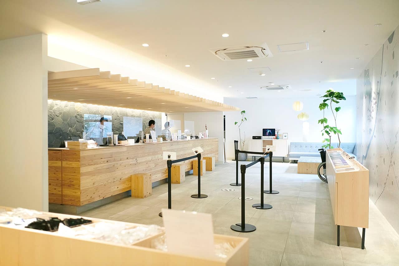 2階にあるフロントで、まずはチェックイン。白を基調とした配色と白木を使った明るいインテリアは、清潔感と温もりが絶妙に共存する空間となっています。そんなフロントのイメージと同じように、スタッフも明るく温かく迎えてくれたのが、とても印象的でした。素敵なワーケーションになりそうな、そんなポジティブな予感が広がります。