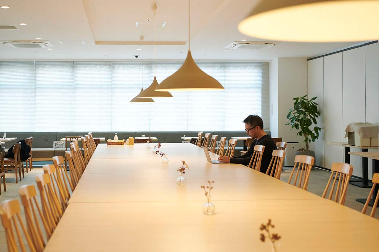 部屋で荷ほどきをしたら、早速2階のコワーキングスペースへ。大きなテーブルと4人掛け、2人掛けのテーブルがあり、資料を広げて仕事をすることもできます。コーヒーやソフトドリンクのサーバーもあり至極快適。仕事に疲れたら、コワーキングスペース隣のMANGA Libraryで気分転換するのもいいですね。つい漫画に夢中になってしまっても、きっと旅のいい思い出になりますよ。