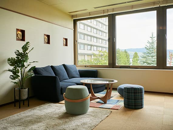 2階にあるフロントで、まずはチェックイン。白を基調とした配色と白木を使った明るいインテリアは、清潔感と温もりが絶妙に共存する空間となっています。そんなフロントのイメージと同じように、スタッフも明るく温かく迎えてくれたのが、とても印象的でした。素敵なワーケーションになりそうな、そんなポジティブな予感が広がります。