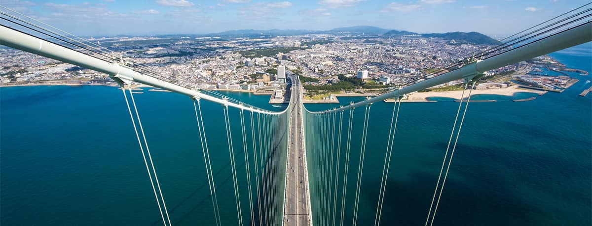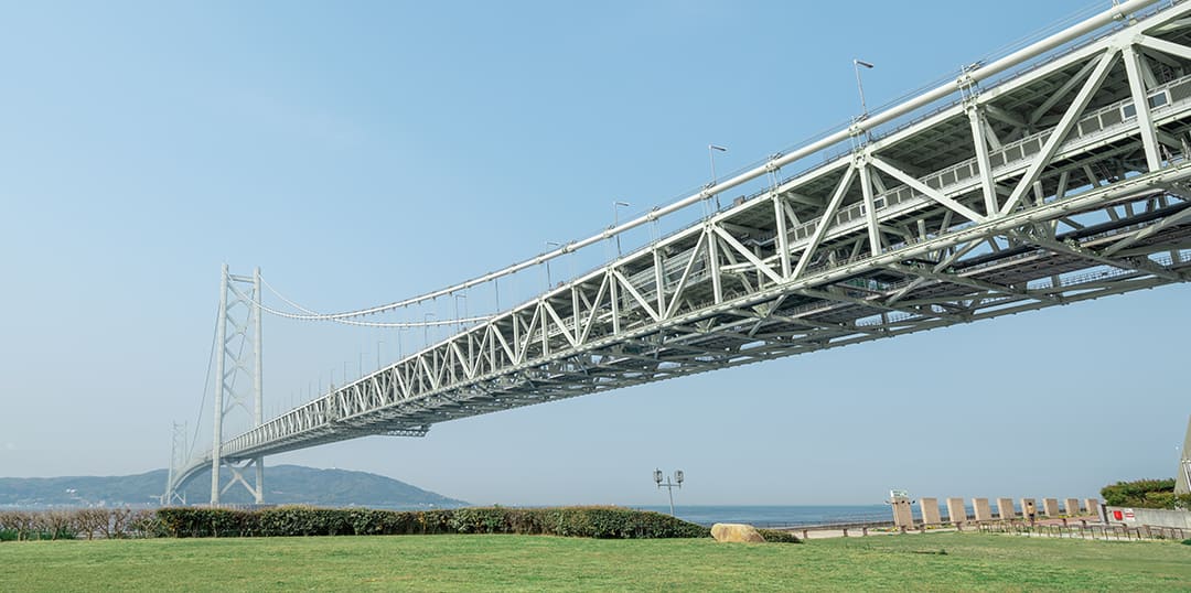 明石海峡大橋は兵庫県神戸市の舞子と淡路市岩屋を結ぶ世界最長の吊り橋。