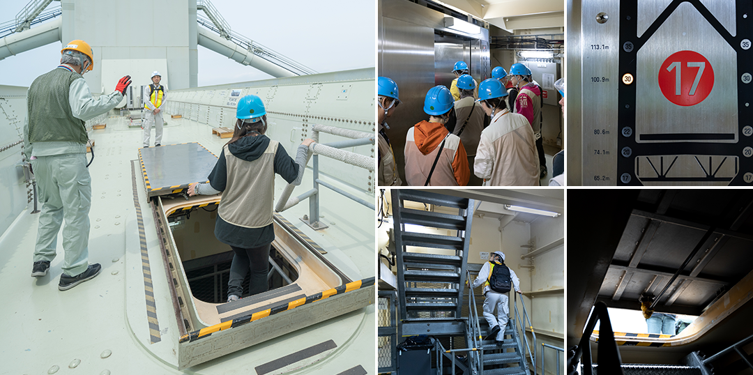 内部に入り、エレベーターで一気に主塔のテッペンまで移動する。