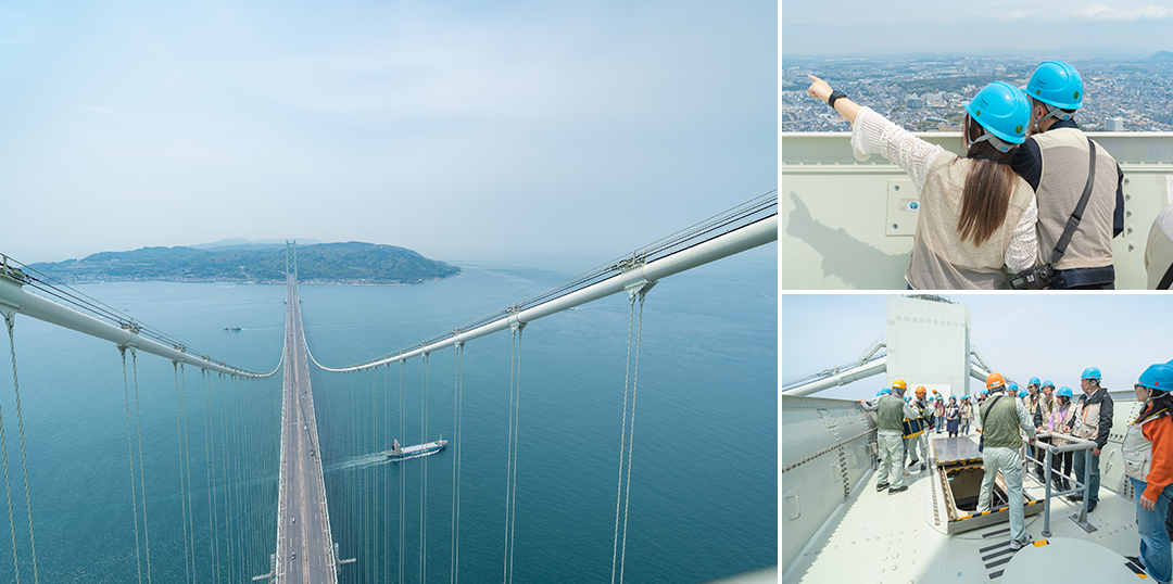 この橋の主塔から見る絶景へのツアーが「明石海峡大橋ブリッジワールド」だ。