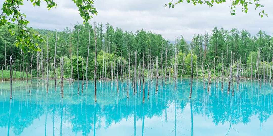 水の絶景と言えば美瑛の「青い池」は外せない。この幻想的な色は、