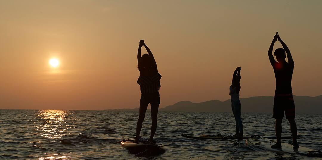 人気急上昇中なのが、SUPにヨガを取り入れたサンセットヨガSUP。