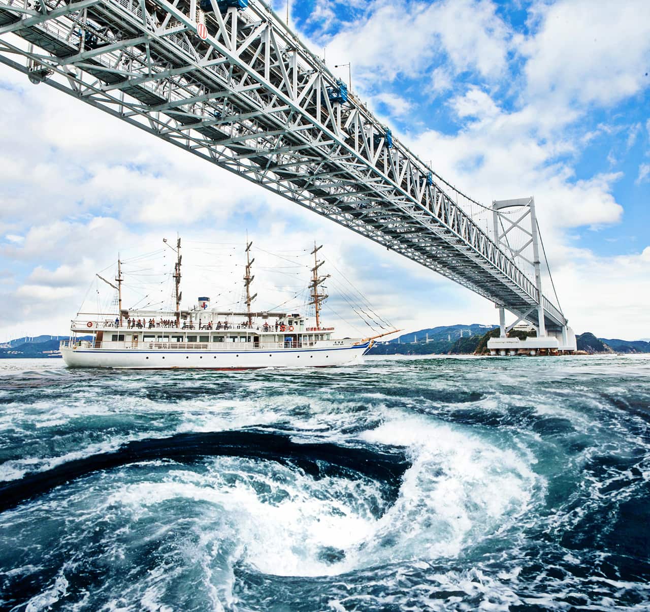 約60分間のクルージングでは、淡路島の美しい風景と鳴門海峡の渦潮まで、多彩な景色を楽しむことができます。