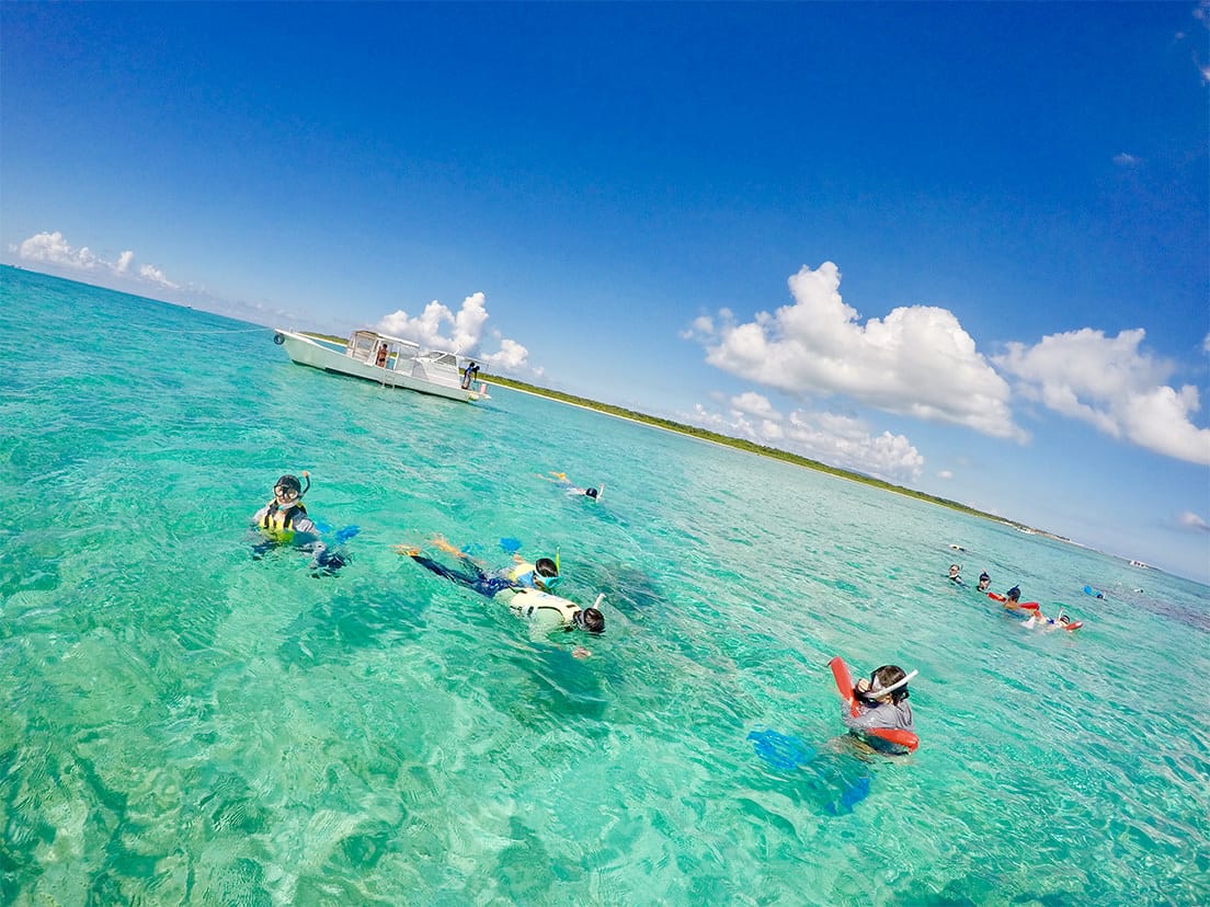 シュノーケリングは3歳以上であれば、どなたでも参加OK。インストラクターが器材の使い方からコツまで丁寧にレクチャーしてくれるので、初めての方も子供も安心して挑めます。運が良ければ、ウミガメやマンタにも出会えるかもしれません。