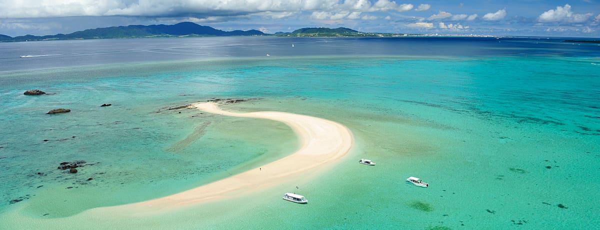 幻の島は、小浜島と竹富島の間にある砂浜でできた三日月型の無人島。正式名称は浜島ですが、潮の満ち引きによって限られた時間だけ姿を現すことから “幻の島” の呼び名で親しまれています。島には視界を遮るのものが何もないため、360度見渡す限り海・海・海。そんな幻の島を満喫する、おすすめのツアーが「幻の島上陸+シュノーケリング」です。