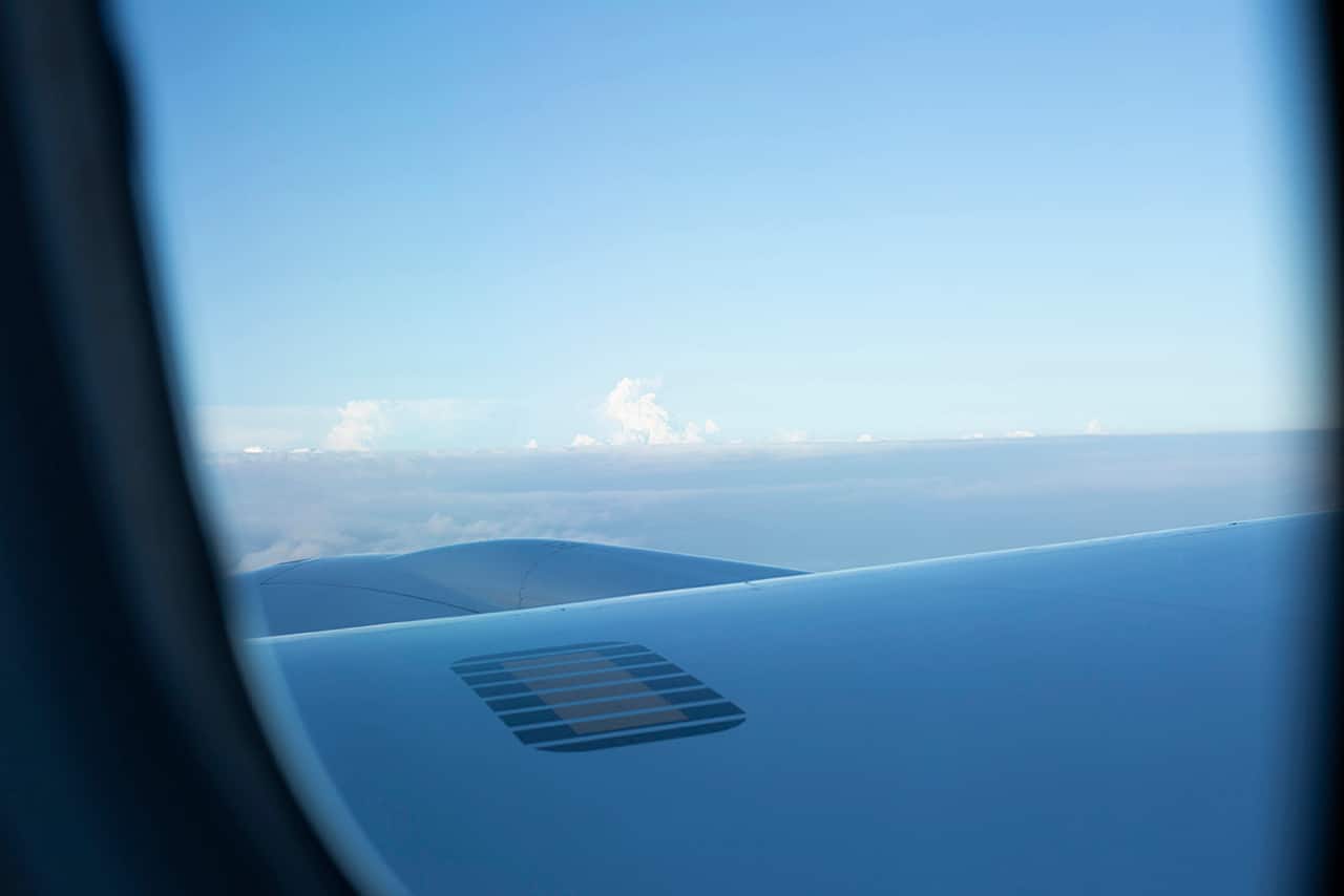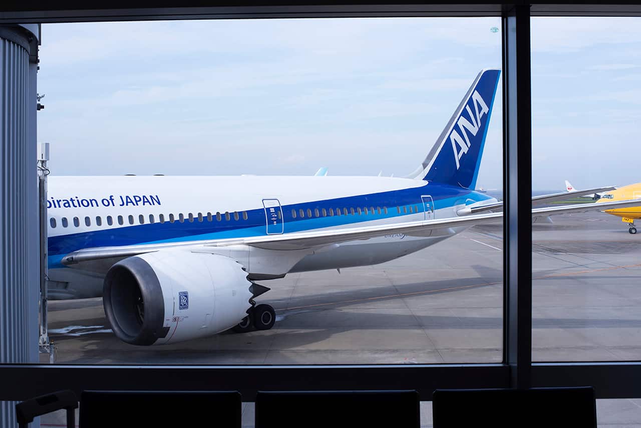 搭乗口の変更があった際はプッシュ通知が届くので、状況確認のために空港の音声案内に耳を澄ませたり掲示板をチェックする必要もありません。さらにANAアプリに運航状況がリアルタイムで反映され、羽田空港を利用する場合には保安検査場の混雑状況や羽田空港マップも確認できるのです。スマホひとつで搭乗便の情報が確認できることの快適さを感じました。手荷物はANA BAGGAGE DROP(自動手荷物預け機)へ。こちらももちろんスマホでQRコードをかざすだけ。身軽な姿で保安検査場へ。搭乗券を出し入れする手間もなく、スムーズに搭乗口を抜けて機内へ向かいました。