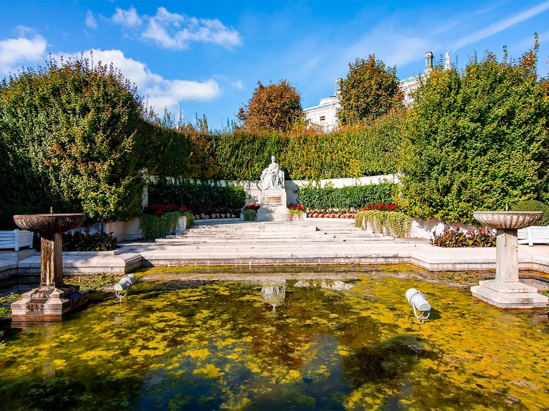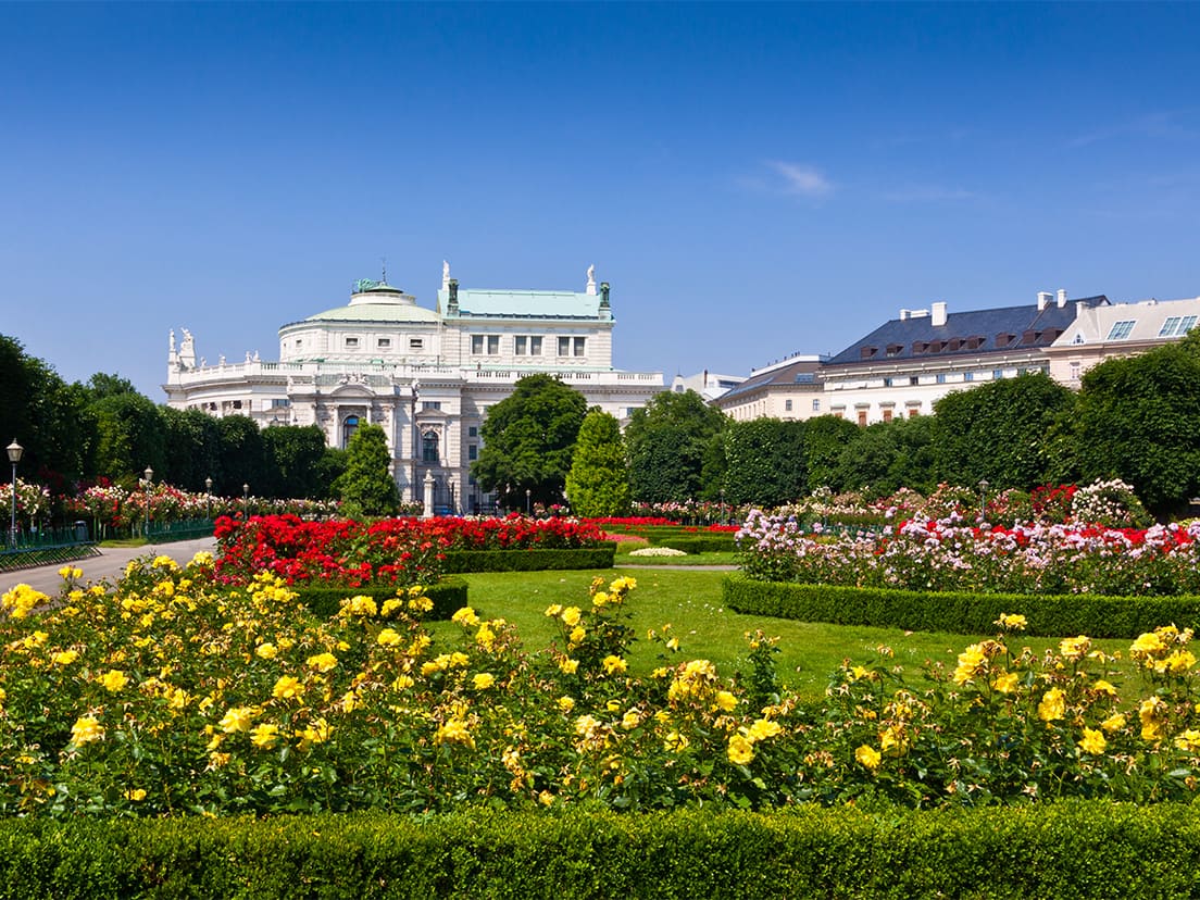 まずは市内の中心地へ。市庁舎や国会議事堂など、趣のある建築美を堪能したら、広々とした市民庭園「フォルクスガルテン(Volksgarten)」でひと休み。1823年に一般公開されたこの公園では200種類以上のバラが楽しめる他、手入れの行き届いた見事な自然美と周囲の風景に心身が癒される場所です。