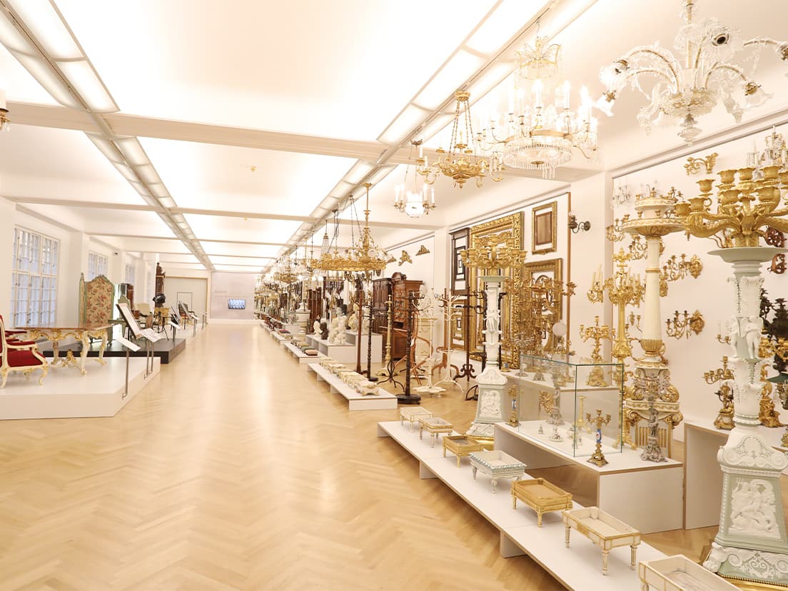 かつて王宮の家具を収納する倉庫があった場所が、現在は広大な中庭のある世界最大規模の家具博物館になっています。在りし日の王宮を知る調度品から、20〜21世紀のモダンデザインの紹介まで、3世紀に渡る歴史を目の当たりにする貴重な場所。小さな部品の紹介からエリザベートの肖像画や胸像まで、実に16万点以上という圧巻の展示です。