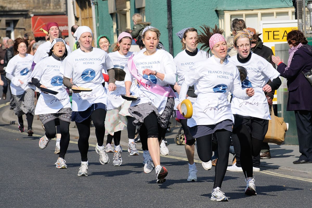 フライパン片手に走って祝う、イギリスのパンケーキ祭り