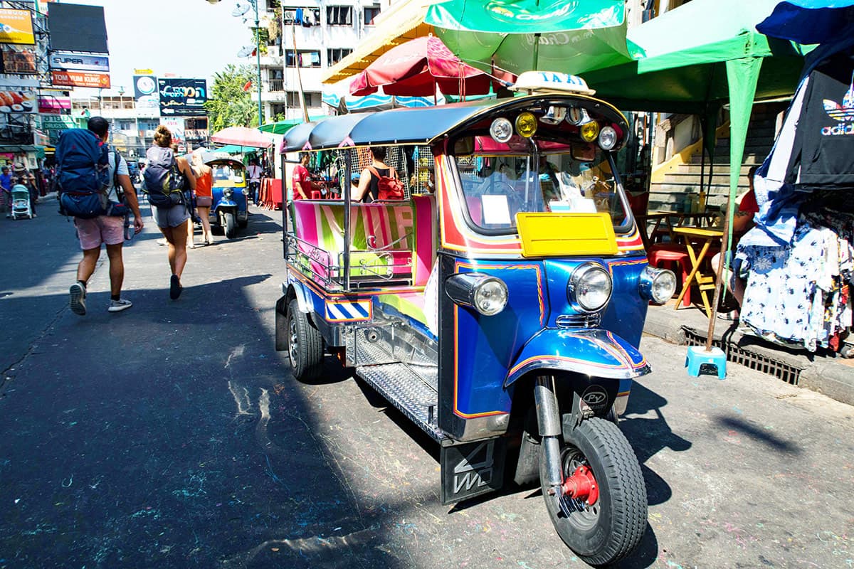 電車、車、ボートなど移動手段は多様。目的地に合わせて選択しましょう。家族でストレスなく移動するなら、「Grab」という配車アプリがおすすめ。ドライバーもつかまりやすく、事前に料金もわかるので、安心して利用できます。移動もイベントにするなら「トゥクトゥク」やチャオプラヤー川を走る「エクスプレス・ボート」も試してみたいところ。