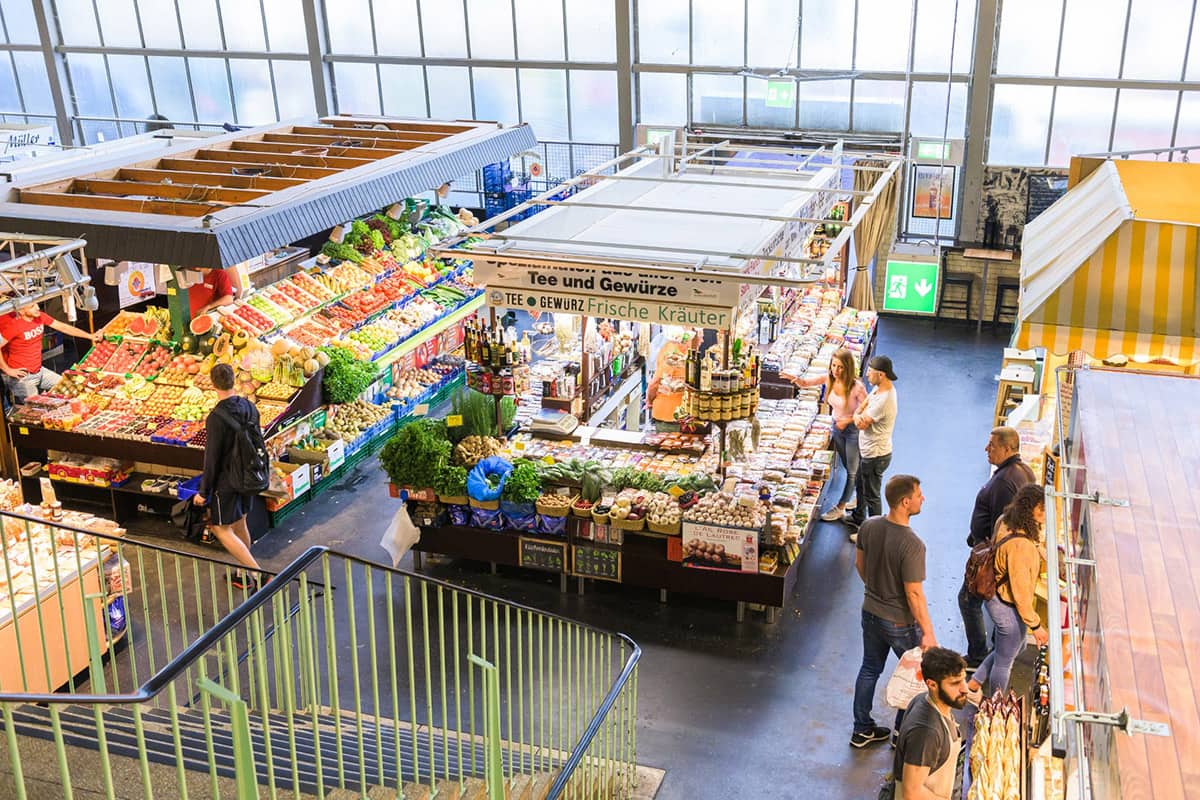 フランクフルトといえば、もちろんフランクフルトソーセージ!街の中心部にある大聖堂から徒歩ですぐ、フランクフルト中央駅から徒歩20分ほどの距離に、屋内市場「クラインマルクトハレ」があります。京都の錦市場のような場所で、ソーセージやパン、チーズなどがたくさん売っています。「毎日がっつりドイツ料理だから今日は軽めに」「疲れたから簡単なものを」なんて時の食料調達にもぴったりです。
