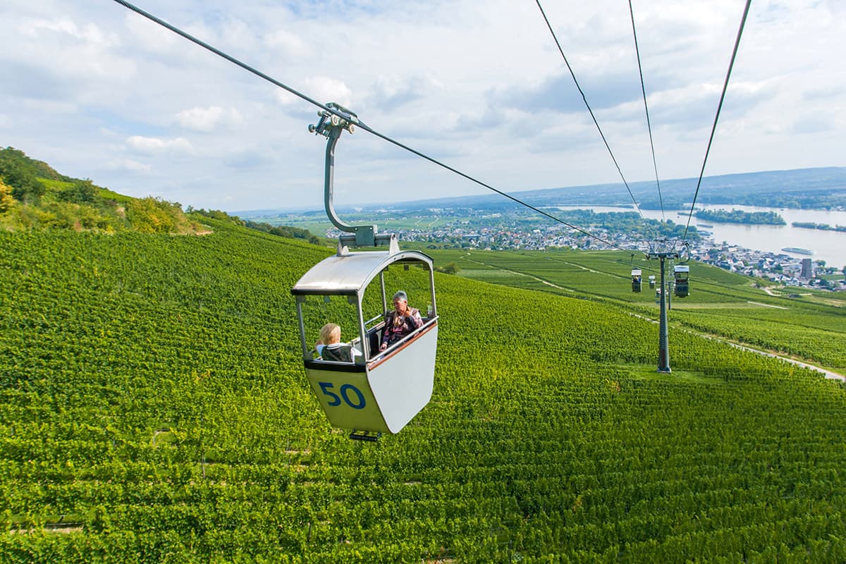つぐみ横丁を抜けると、ゴンドラ乗り場が見えてくるので乗ってみることをおすすめします。ゴンドラの乗車時間は約10分。広大なワイン畑と雄大なライン川がおりなす絶景を、のんびり楽しみましょう。
