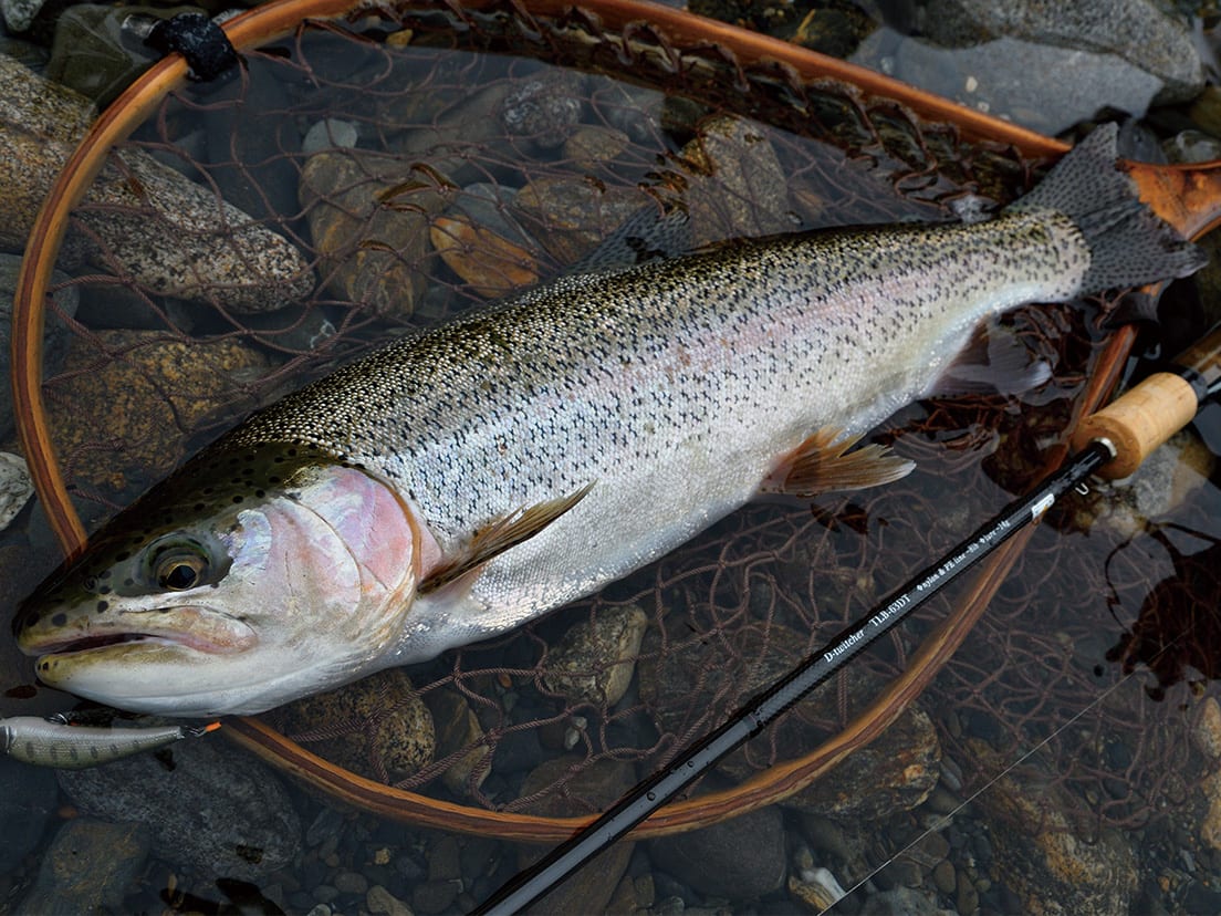 北海道は釣りファンの間で"トラウト王国"と呼ばれるように、大型の鱒類(トラウト)が各地域にせい息しています。なかでも一番の人気ターゲットはニジマス。そしてニジマスといえば、道東・十勝エリアがよく知られた釣り場の1つです。十勝川水系では古くから、有志による釣り場づくりの一環として、ニジマスの放流が行われてきました。これにより、自然産卵による野生魚も見られるようになり、コンディションのよいニジマスがロッドを絞るようになりました。