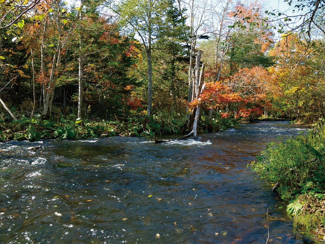 秋も深まってくると河畔林は紅葉し、景色を楽しみながらロッドを振れます。本州の釣り場では、紅葉の頃にはたいてい多くの河川が釣りの禁漁期に入ってしまうので、こうした部分も北海道の秋の釣りの魅力といえます。
