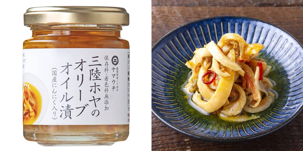 仙台ゲート店副店長、佐藤里奈さんがおすすめしてくれたのは「三陸ホヤのオリーブオイル漬」。三陸の豊かな海で育ったホヤの旨味と、にんにくの香りが相性抜群で、食欲をそそる一品になっています。唐辛子と塩こしょう入りなので、そのままおつまみとしてはもちろん、パスタなどの料理にも活躍します。