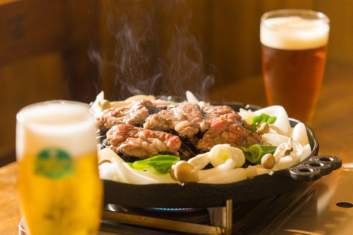 北海道グルメといえばジンギスカン。醸造所直送の地ビールで乾杯
