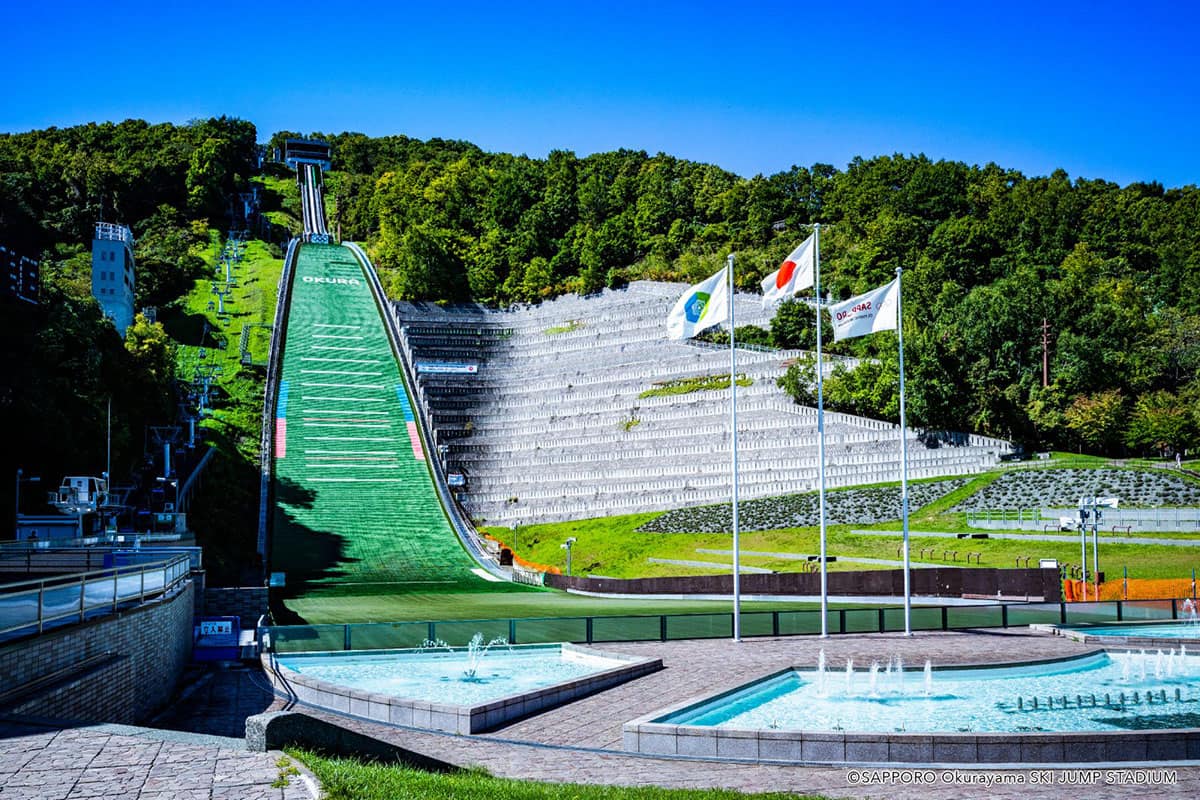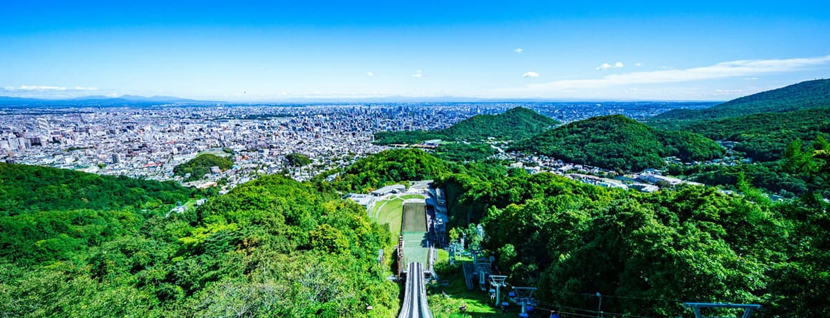 新千歳空港からJRに乗れば約40分で札幌へ。標高307mの大倉山は、札幌中心部にある大通公園から山頂のスキージャンプ台が見えるほど都心に近い山です。