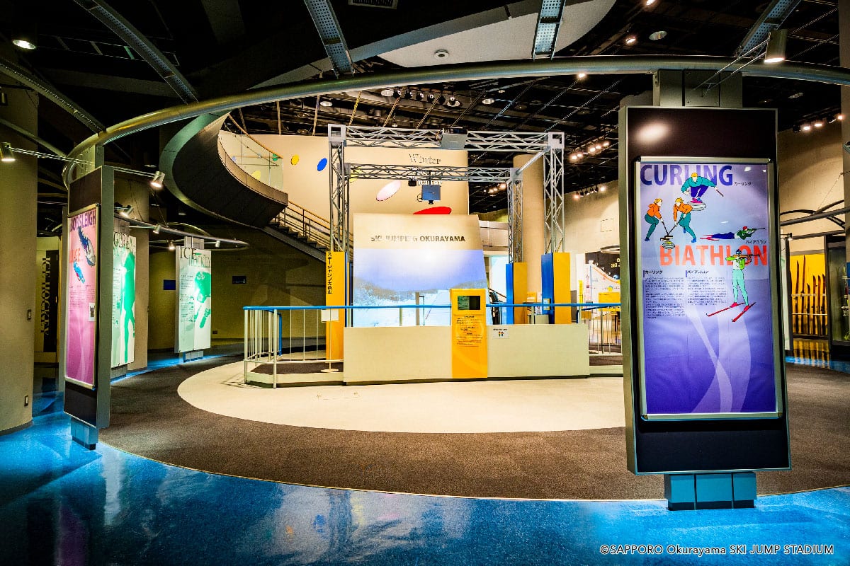 展望ラウンジで、眺望やジャンプのスタートラインの迫力を堪能したらリフトで下りて、札幌オリンピックミュージアムへ。館内には、オリンピックとパラリンピックの歴史や、アスリートたちの偉業を称えるコーナーのほか、冬のオリンピック競技を体感できるシミュレーターがあります。スキージャンプやボブスレーでの滑走、パノラマシアターなどで雪や氷の世界のスピードや飛翔感を体験してみましょう。