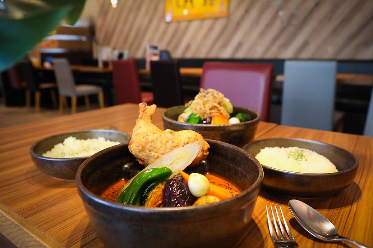 円山エリアで味わえる北海道名物の一つがスープカレー。円山公園駅近くの円山ピカンティは地元の方にも人気のスープカレー専門店。定番メニューのやわらかホクホクなチキンレッグとたっぷり野菜の「チキンレッグ」や、一番人気の「サクッとPICAチキン」、ヘルシーなラム肉を使った「やわらか仔羊のガーリック焼き」など多彩なメニューから迷いながら選ぶのも旅の楽しみです。