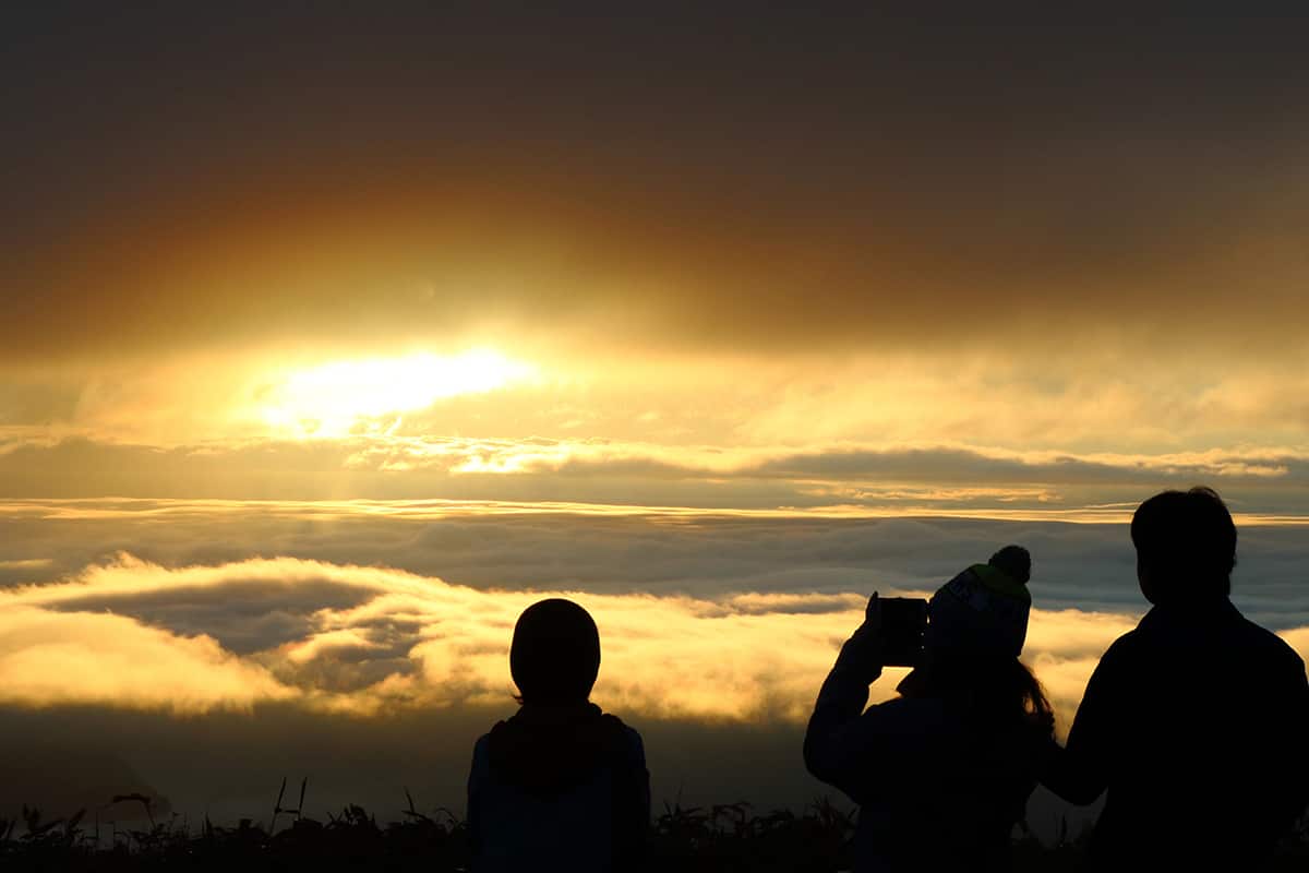 満天の星空を満喫した翌朝は、うんと早起きして雲海を見に行きましょう。道東は雲海が発生しやすい地域。摩周湖畔なら摩周第1展望台、屈斜路湖畔なら津別峠展望台や美幌峠展望台から、気候条件がそろえば通年で見ることができます。毎朝、雲海ツアーを実施している屈斜路原野ユースゲストハウスの山本和之さんによると、雲海の発生率が高いのは6月〜7月。おおよそ50%の確率で見られるのだそうです。レンタカーやバイクを使って自分で見に行くこともできますが、日の出前に慣れない暗い道を通ること、バイクの場合は雲の中を走ることで体がぬれて冷えてしまうことを考えると、ガイドや宿泊施設によるツアーに参加するのが安心です。