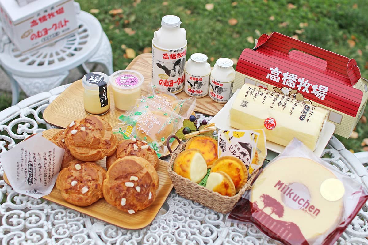 JRニセコ駅から車で約10分のところにある「ニセコ髙橋牧場」のミルク工房は、見えるところにある牧場から届いた新鮮なミルクを使ったソフトクリームやロールケーキ、アイスクリームなどのスイーツ、チーズやのむヨーグルトなどの乳製品が人気。どの商品も、素材の良さが感じられる美味しさだから北海道のお土産にぴったりです。