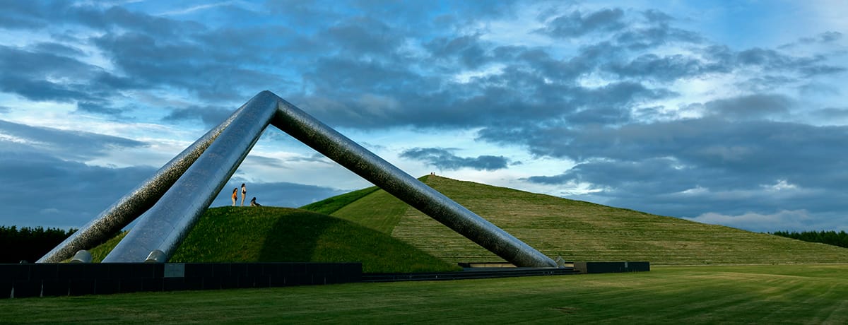 モエレ沼公園は、世界的に有名な彫刻家イサム・ノグチが「全体をひとつの彫刻作品とする」というコンセプトのもと基本設計をした総合公園です。約188.8haの広大な敷地では、自然とアートが融合した景観を楽しむことができます。公園内を歩くと、視点によって変化する景色にワクワクさせられます。