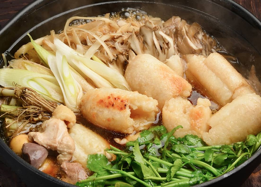 新米の季節には、秋田の郷土料理「きりたんぽ鍋」を味わってみませんか。きりたんぽ鍋を味わうなら、毎日炭火で丁寧に焼き上げるたんぽと比内地鶏でとったスープがこだわりの「秋田きりたんぽ屋」へ。自家製のたんぽは、通常よりも大きく、食べ応え十分です。ゴボウをはじめネギ、マイタケ、セリといったたっぷり野菜が加わり、体にもやさしい一品に仕上がっています。