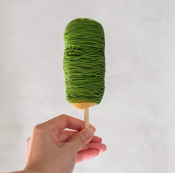 人気の「モンブラン芋団子シリーズ」は、やわらかな餅に芋餡を包み、香ばしい焼き栗のペーストを贅沢に絞った逸品。味は焼き栗、宇治抹茶、京ほうじ茶、あまおうの4種類。ひと月に7,000本以上売れるという大人気スイーツで、SNSでも話題を集めています。