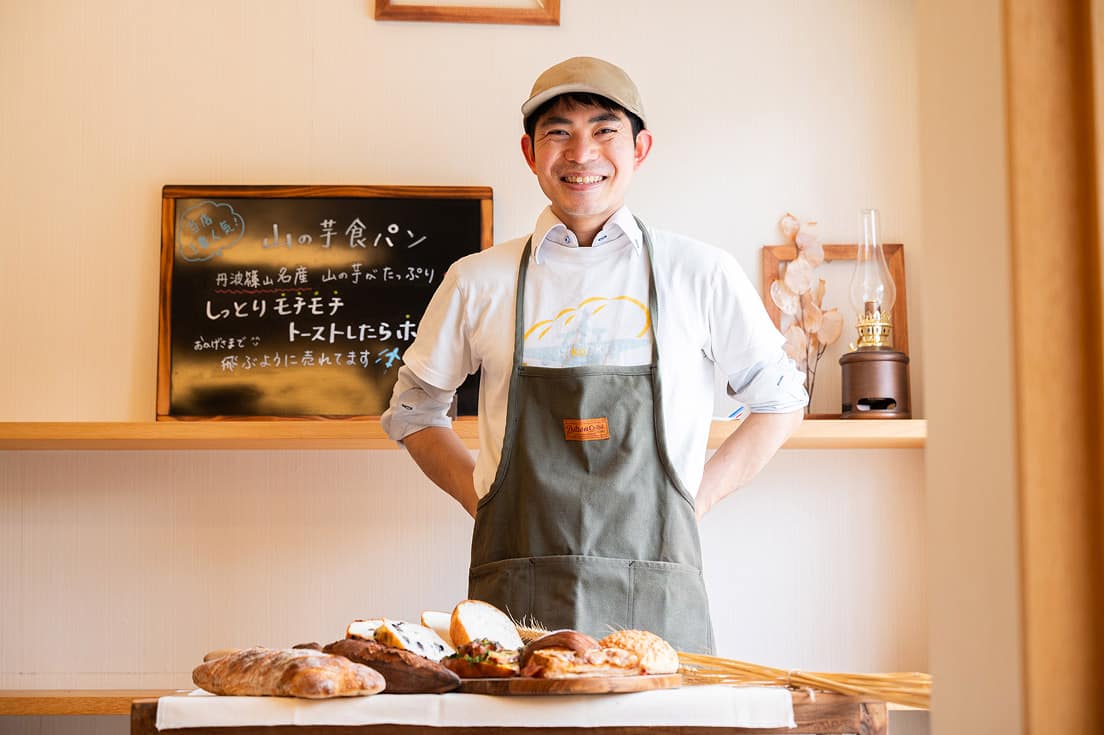 オーナーの児島さんは、丹波篠山の素材に魅せられてこの地で店を構え、山の芋や黒豆など地元の食材をふんだんに使ったパンづくりを続けています。定番の山の芋食パンはもちろん、秋限定の「黒枝豆フランス」も毎年楽しみにするファンの多い人気商品です。