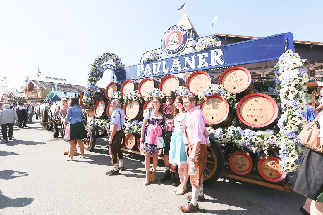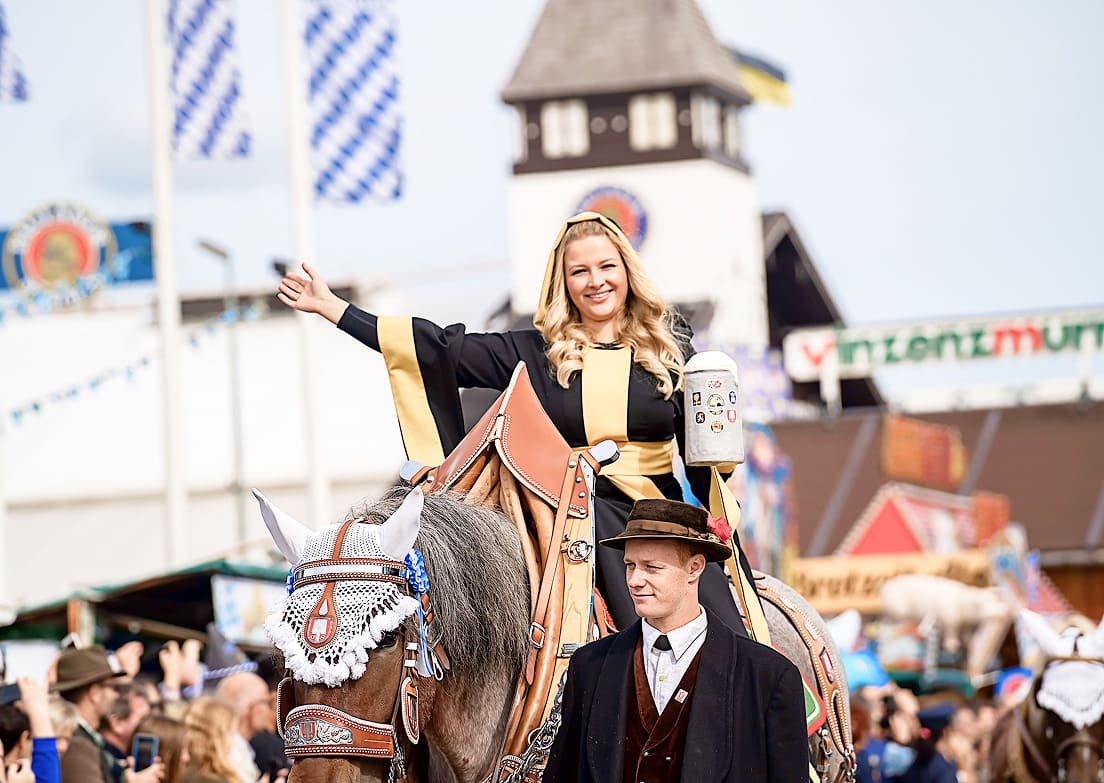 開幕日には、各ビール醸造所が装飾を施した馬車で会場入りする行進が行われます。その後、ビアテント内で開幕を告げるオープニングセレモニーが開催され、フェストの幕が正式に上がります。