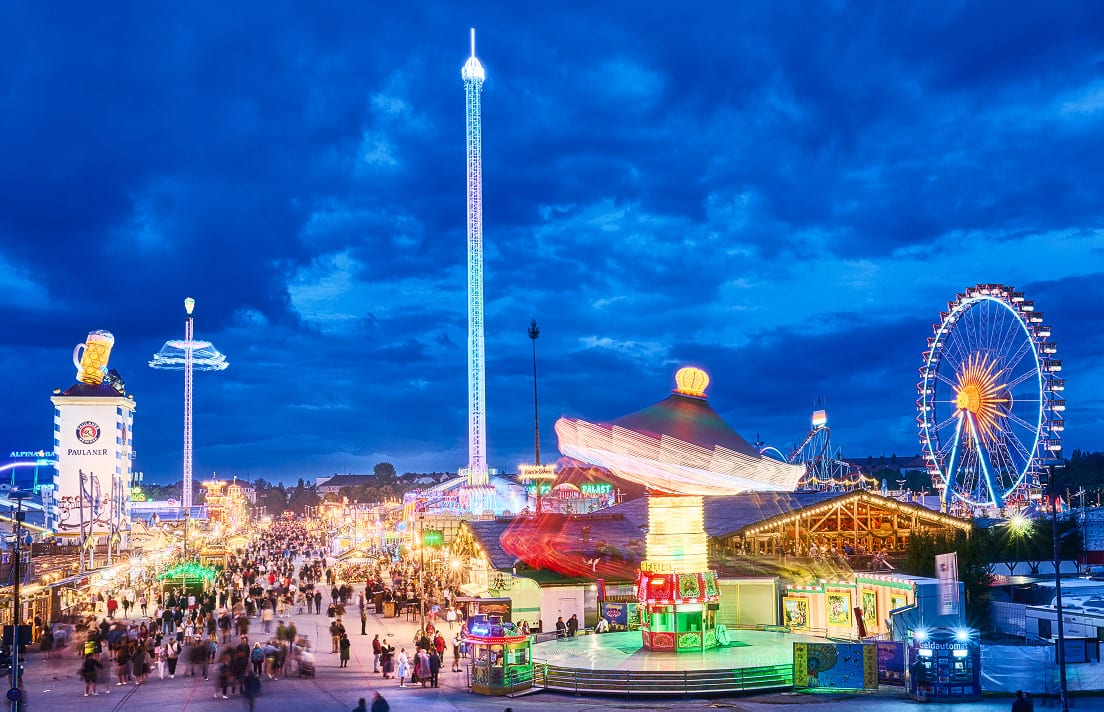 ほかにも、予約なしでも入りやすい小型テントや、メリーゴーランドやジェットコースター、観覧車など遊園地さながらの遊戯施設なども充実。お酒を飲まない方やお子様連れでも楽しめるのが、オクトーバーフェストの魅力のひとつです。毎週火曜はファミリーデーとなっており、19時までは乗り物や食事の一部が割引されたり、特別料金で提供されます。