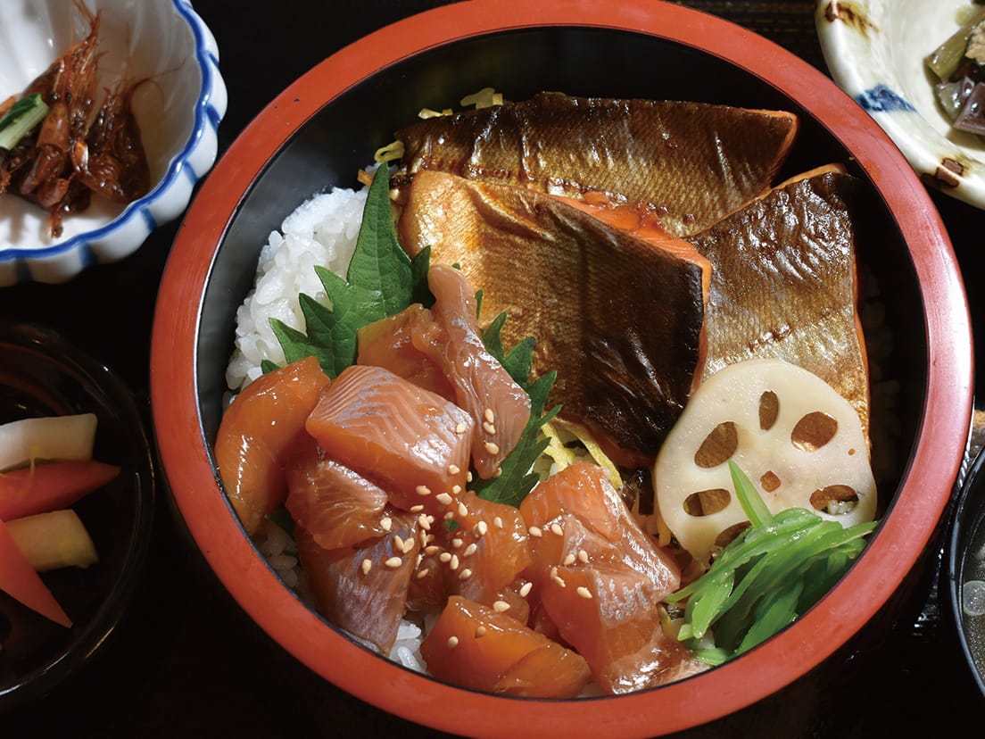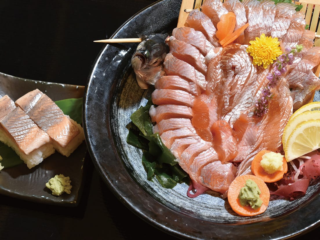 ヒメマスの身はサーモンピンク。身は柔らかく繊細、なおかつ脂がしっかりと乗っていながら臭みがなく、上品な中にもしっかりとした旨味があります。刺し身、塩焼き、ムニエルなど、多彩な料理法で味わえますが、十和田湖の周辺はヒメマス料理を提供する飲食店や宿が多く建ち並んでいます。