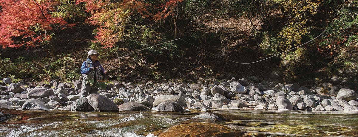 本州にも紅葉を眺めながら渓流釣りを楽しめる河川があります。宮城県の荒雄川(あらおがわ)、栃木県の箒川(ほうきがわ)、群馬県の神流川(かんながわ)などがありますが、なかでも釣り場が広く、ダイナミックな景色の中でサオを振れるのが箒川です。
