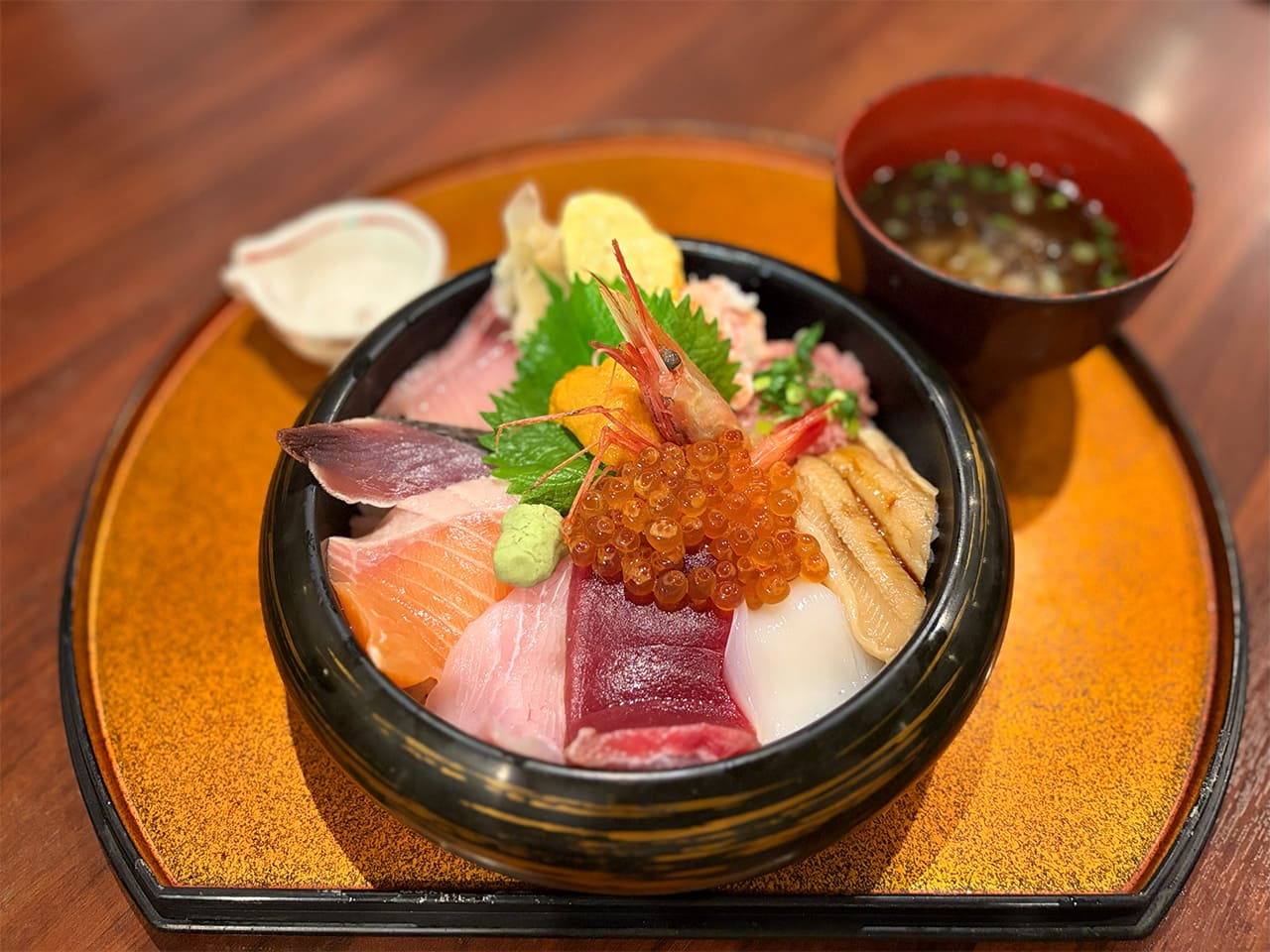 今回は市場に入ってすぐのところにある「近江町食堂」におじゃましました。昭和5年創業の老舗飲食店で、海鮮丼をはじめ、定食や逸品料理などメニューはなんと100種類以上。のどぐろの塩焼きや刺身、白エビのからあげなど金沢らしい人気のメニューも楽しめます。リーズナブルなのに大満足の味とボリュームです。