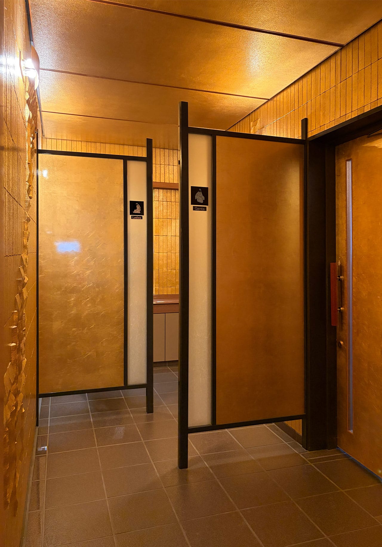 お店の2階の女性トイレには、なんと壁一面に金箔を貼った"黄金のトイレ"があります。お店に寄った際は必見です。金箔屋さくだはひがし茶屋街に3店舗あり、金箔貼り体験だけでなく金箔を使った伝統工芸品・小物・食品などが販売されています。お土産を買う際はぜひのぞいてみてください。