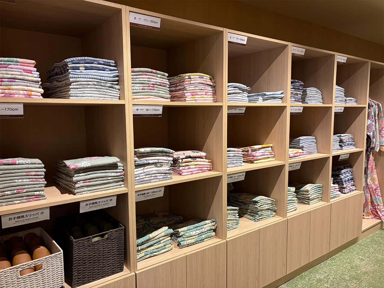 山中温泉にはさまざまな宿がありますが、今回は「大江戸温泉物語Premium 山中グランドホテル」に宿泊しました。大浴場を全面改修し、「あやとりの湯」に棚湯を、「鶴仙の湯」に屋外風呂を新設し、さらに浴場内の床に畳を敷き詰めたそう。自然を存分に堪能しながら極上の温泉体験ができます。こちらでは浴衣を自分で選ぶことができ、女性用の柄はなんと10種類以上もそろっています。好きな柄を選ぶ時間も楽しみですね。