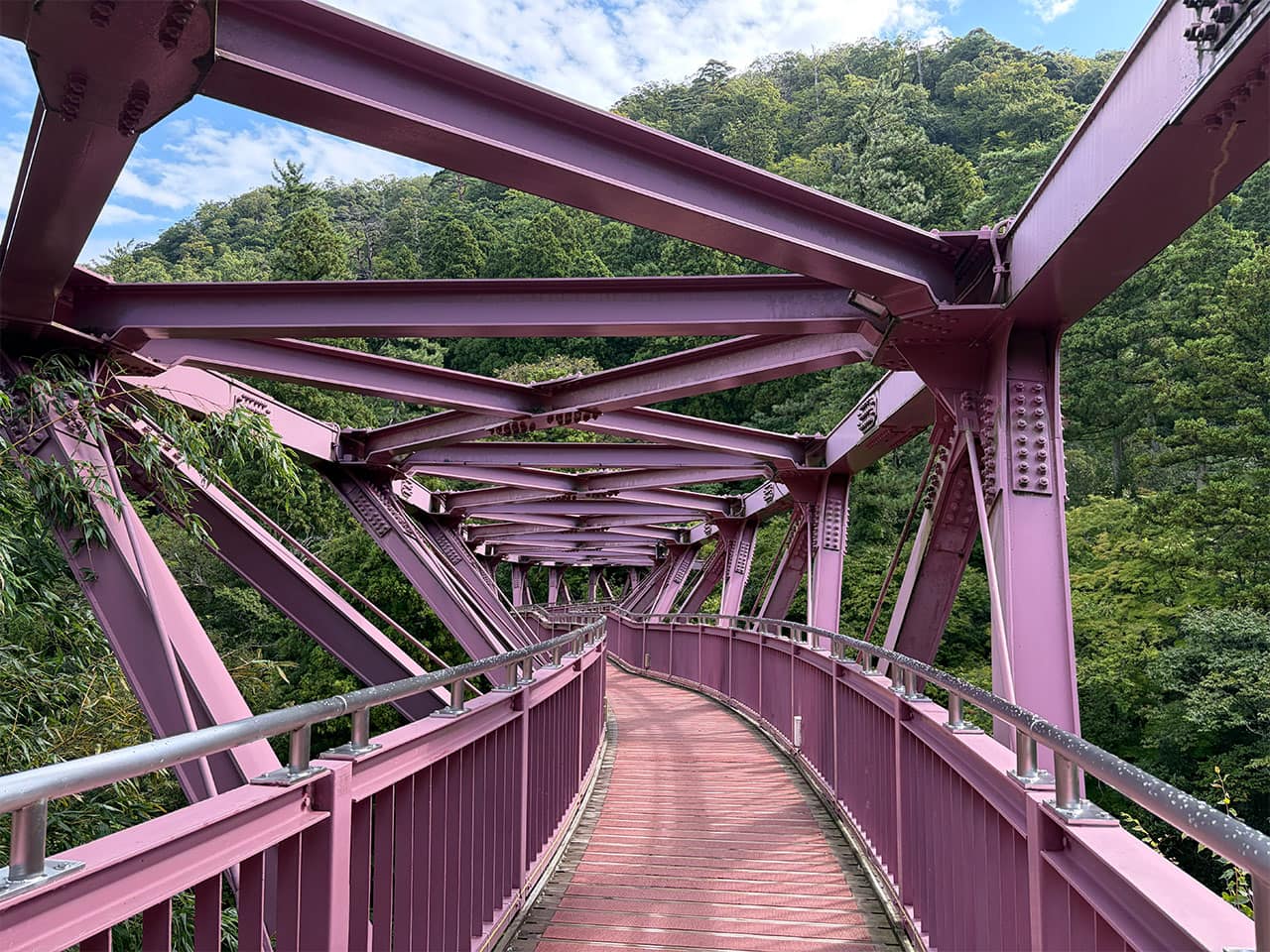 翌朝は山中温泉の名所「鶴仙渓」へ足を運びました。大聖寺川にかかる、3つの象徴的な橋を巡りながら、自然豊かな遊歩道の散策ができます。四季折々の表情を楽しめますが、なかでも紅葉の時期は何事にも代えがたい格別な絶景だそう。また、春から秋にかけては川床がオープンしていて、スイーツや飲み物がいただけます。
