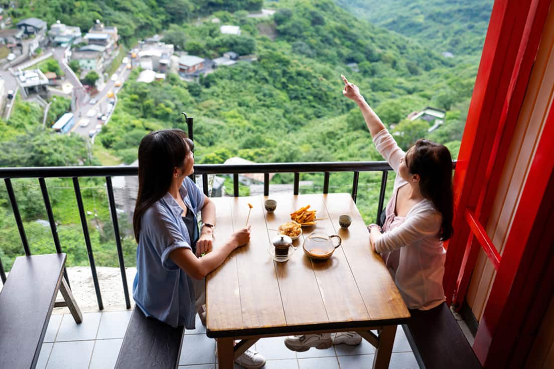 九份にはカフェタイムが満喫できる茶芸館やカフェがたくさんあります。茶芸館では本格的な台湾茶を味わうことができるほか、石段の上からの景色を眺められるのも魅力です。店内では台湾茶や茶器の販売もされています。