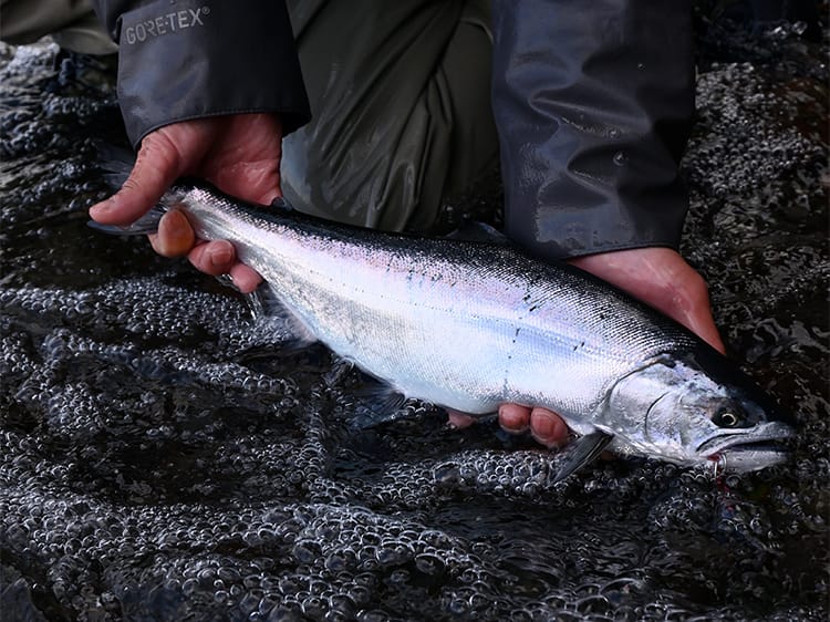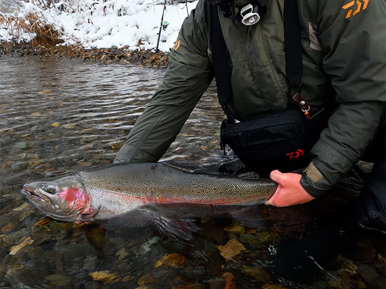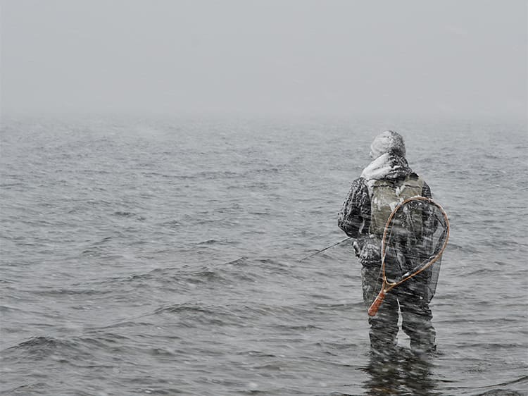 ウエアに関しては、北海道でも釣り場をたくさん歩いて広範囲を探るスタイルの方は透湿防水ウエーダーを履いていますが、あまり移動せず決めた場所に立ち込んで粘るスタイルなら保温性の高いネオプレーンウエーダーを履くのがおすすめです。道具、ウエアともにしっかり寒さに対応した準備をしてください。