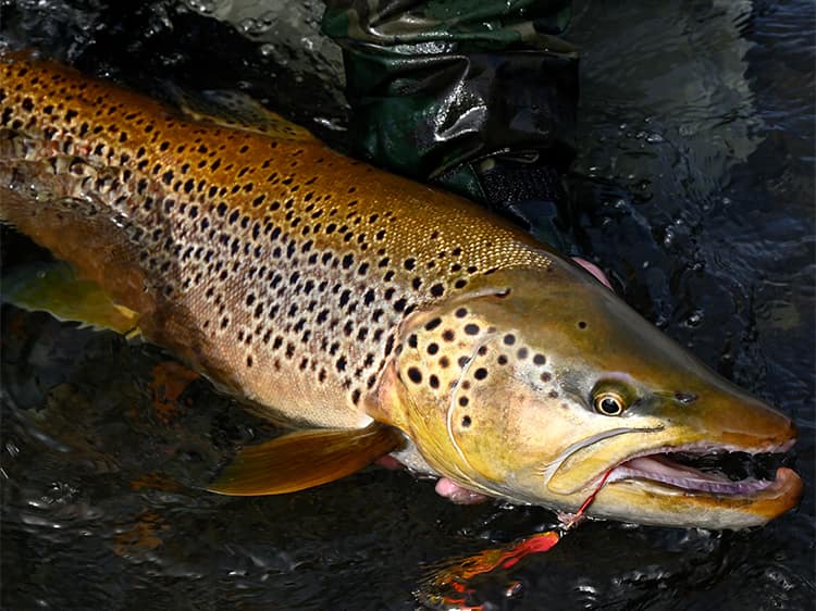 その際のルアーは21~28gのジグミノーが定番。さらにルアーならではのブラウントラウトの釣り方として、25g前後のメタルジグを底付近まで落としたあと、ジャーク&フォールを繰り返すテクニックが知られています。フライは小魚を模したストリーマーが定番です。