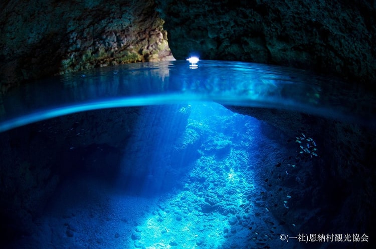 青の洞窟は、沖縄本島の真栄田岬(まえだみさき)にある、全長30mほどの洞窟です。太陽の光が洞窟内に差し込み、海中で反射することで、水面が幻想的なブルーに輝きます。洞窟を訪れるには各ツアー会社が催行するツアーへの参加が必要です。洞窟の入り口付近まで船で行き、スタッフの案内のもと、ダイビングかシュノーケルで洞窟内へと進みます。水中では、色鮮やかな熱帯魚やウミガメなど、沖縄ならではの生きものとの素敵な出合いがあるでしょう。